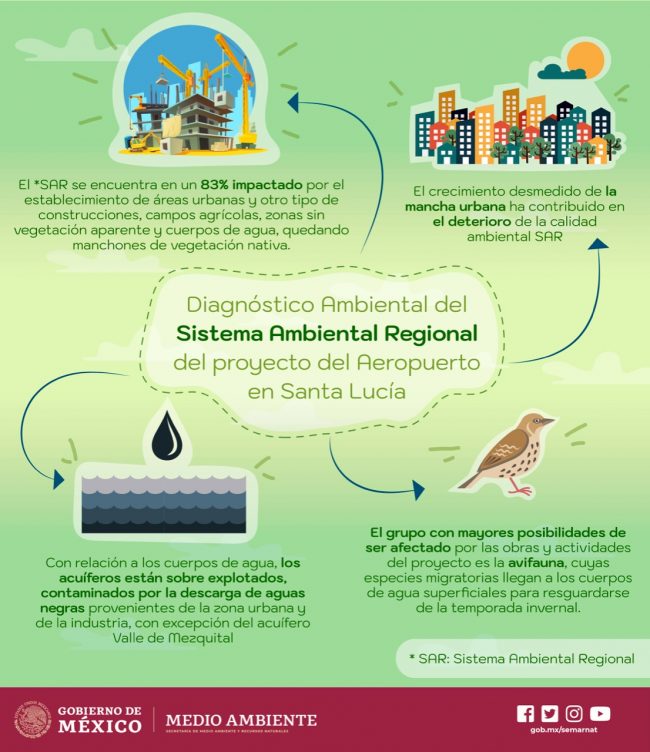 El proyecto del Aeropuerto de Santa Lucía es «ambientalmente viable», por lo que se determinó autorizarlo aunque «de manera condicionada», informó la Secretaría de Medio Ambiente y Recursos Naturales. El permiso tendrá una vigencia de 50 años para la operación y el mantenimiento, prorrogables conforme a la revaloración del Plan Maestro vigente, según la resolución…