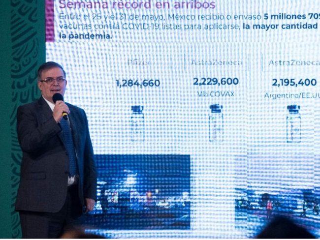 El país ocupa el noveno lugar mundial en aplicación de vacunas contra Covid-19, afirmó el secretario de Relaciones Exteriores, Marcelo Ebrard.