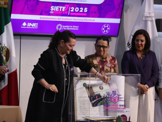 El INE presentó la Urna Conmemorativa 2014-2025, con la finalidad de recordar la participación política de las mujeres.