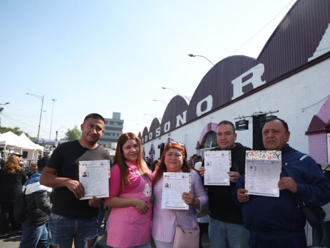 La jefa de Gobierno de la Ciudad de México, Clara Brugada, anunció un apoyo de 50 mil pesos y créditos de hasta 100 mil pesos en el Mercado de Sonora.