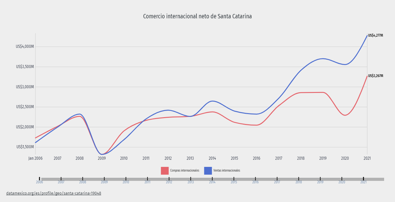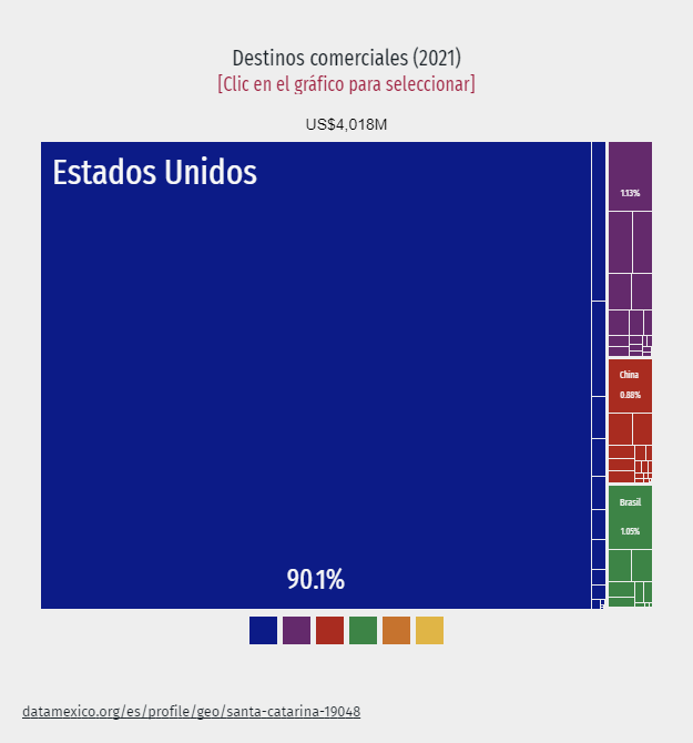 Hasta 2021, las ventas internacionales del municipio sumaban cuatro mil 277 millones de dólares.