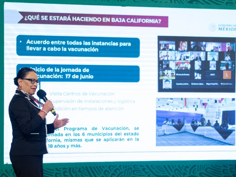 La secretaria de Seguridad destacó que la vacunación en Baja California se llevará a cabo de manera vehicular y peatonal con un despliegue de 306 brigadas de vacunación en los municipios de Ensenada, Tijuana, Tecate, Rosarito y Mexicali.