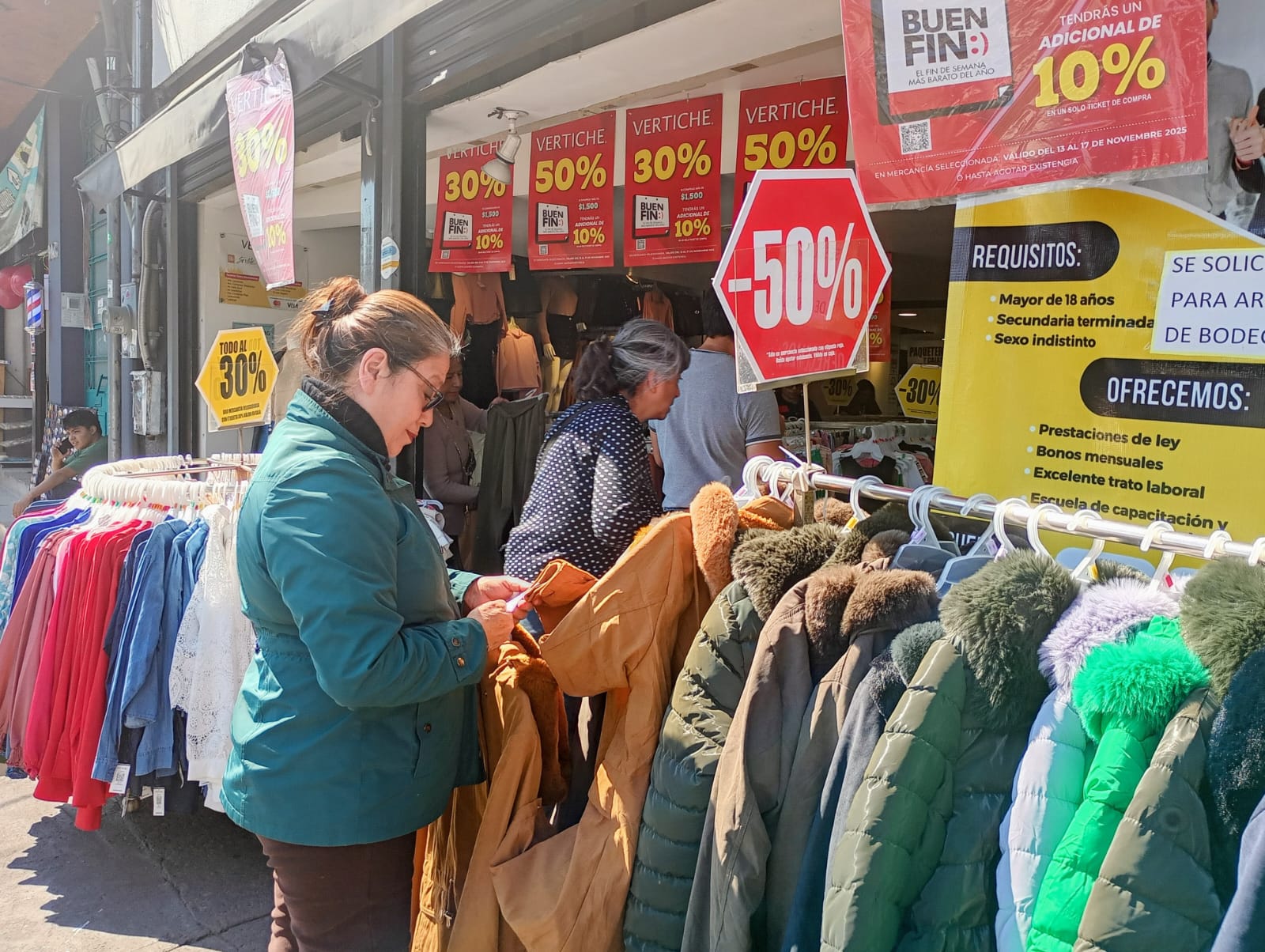 Desde las 7:30 am los vendedores de los negocios fijaron sus carteles en las vitrinas con descuentos desde 15, 20, 25 y hasta un 50 por ciento, promociones de 2×1 y 3×1, así como meses sin intereses e incluso hay comercios que se mantendrán abiertos las 24 horas para que los interesados tengan tiempo de hacer sus compras.