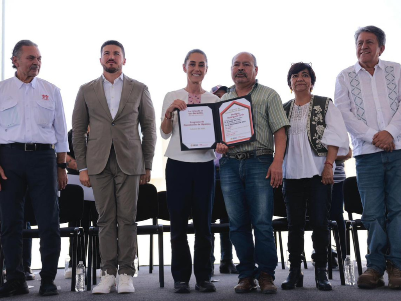 Acompañana del gobernador de Nuevo León, Samuel García, la presidenta Claudia Sheinbaum encabezó la entrega de documentos de vivienda en Nuevo León