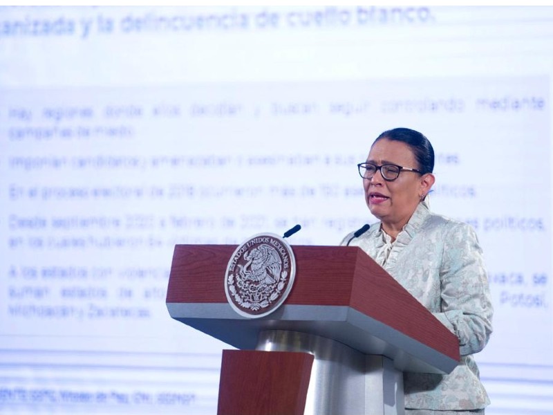 Por su parte, la secretaria de Seguridad y Protección Ciudadana, Rosa Icela Rodríguez, advirtió que siete entidades federativas concentran el mayor riesgo de violencia contra candidatos.