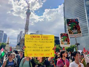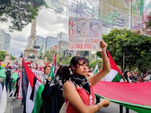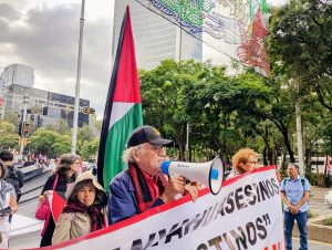 Representantes de movimientos sociales en apoyo a Palestina marcharon nuevamente desde el Ángel de la Independencia hasta la Plaza Palestina Libre de CDMX. La cual está instalada a un lado de la Alameda Central. Las demandas de esta movilización no han cambiado. Siguen siendo las mismas en pro de los derechos humanos de un pueblo que ha sido golpeado por la masacre y la hambruna.
