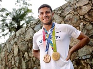 Thiago Braz de 30 años, ganó la medalla de oro en los Juegos Olímpicos de Río 2016, estableciendo el récord olímpico con 6,03 metros, y obtuvo el bronce en Tokio 2020.