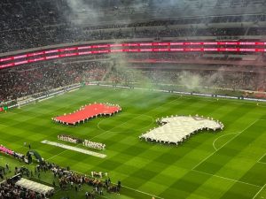 El momento emotivo se vivió al mediotiempo cuando las luces se apagaron para que el llamado Coloso de Santa Úrsula despertara al escuchar el Cielito Lindo, con un espectáculo de luces, sonido y juegos pirotécnicos.