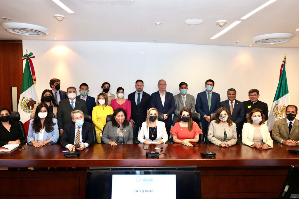 Santiago Abascal, líder del grupo de ultraderecha español Vox se reunió con integrantes de la bancada para firmar la Carta de Madrid, que busca detener el avance del comunismo en la “Iberoesfera” porque lo considera una amenaza.