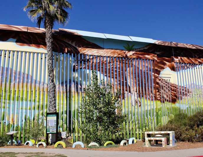 El mural “Abrazo mutuo” de Alfredo “Libre” Gutiérrez transforma el muro de Tijuana en un lienzo de color y unión entre dos culturas.