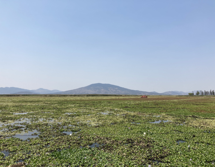 El lirio acuático llegó a México a finales del siglo XIX. Esta planta invasora se extiende y reproduce velozmente, impidiendo el paso de luz y acabando con el oxígeno en el agua.